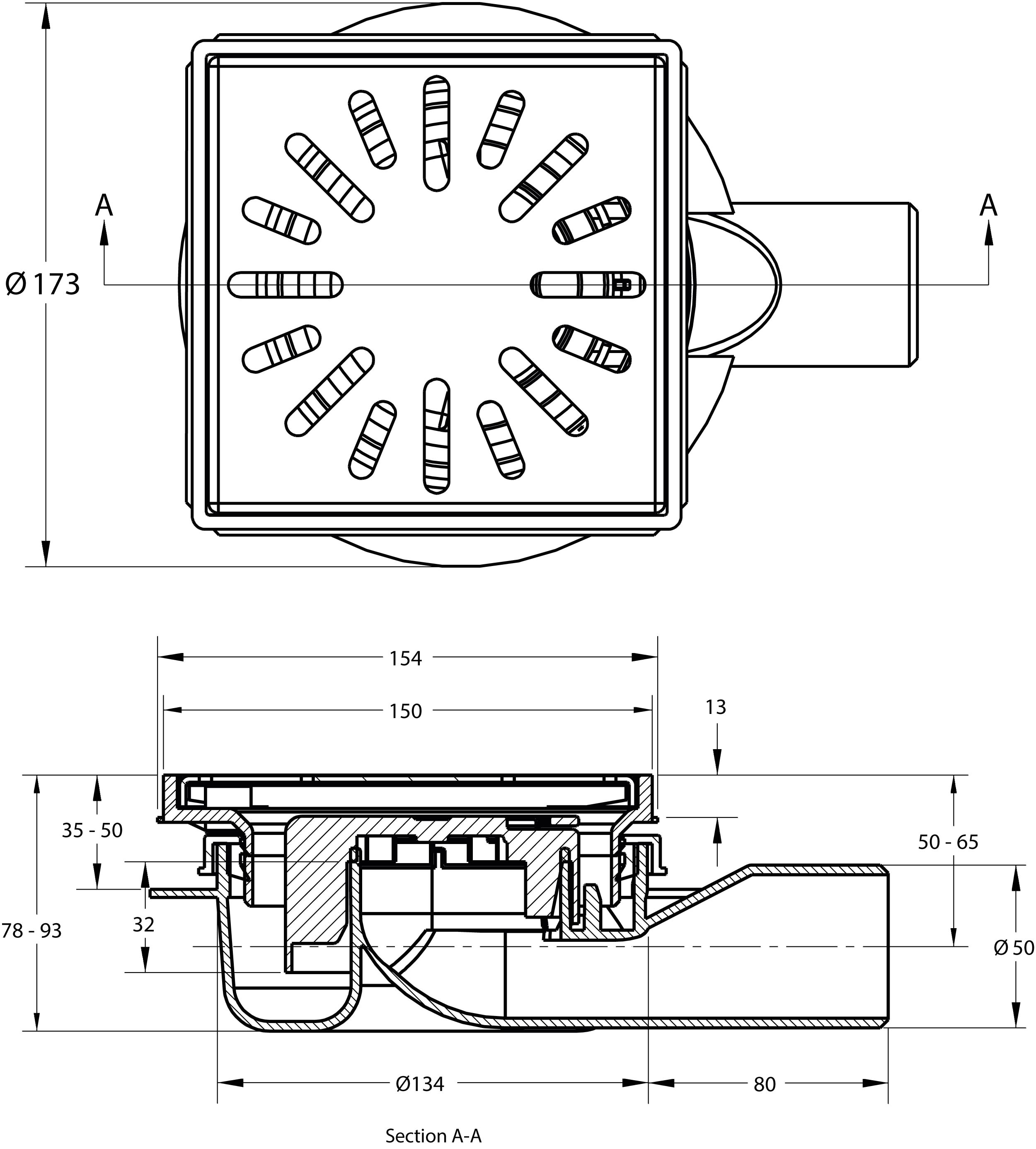 HomeBuitengevelAfvoer en leidingmateriaalPutten en dekselsABS Afvoerput 150x150mm Zijaansluiting RVS Rooster 4016A Bezand Horizontaal en Vertikaal Verstelbaar