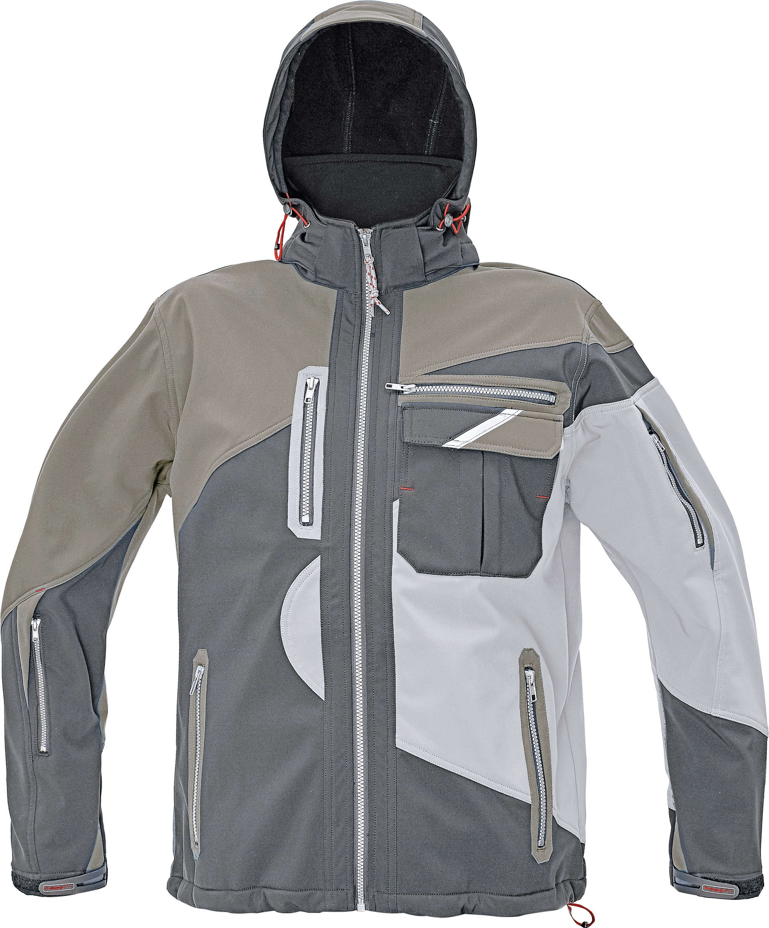 Softshell jas voor heren die je warm houdt met een capuchon en voorzien is van 6 zakken voor gereedschap en je telefoon.