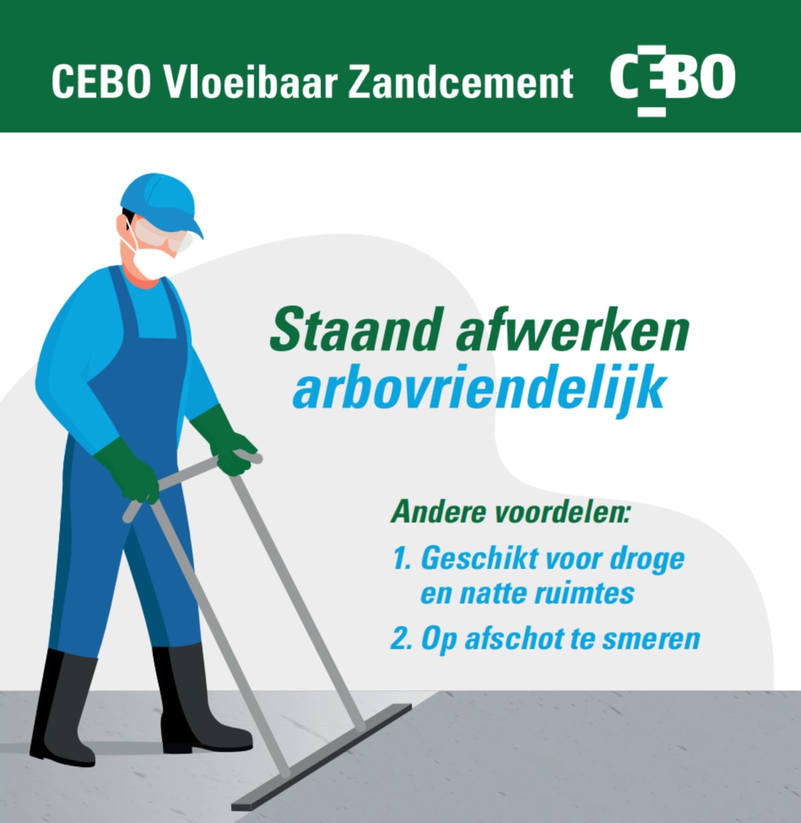 CEBO Vloeibaar Zandcement is geschikt voor het binnenshuis gieten van een zandcement dekvloer, maar is ook toepasbaar op: