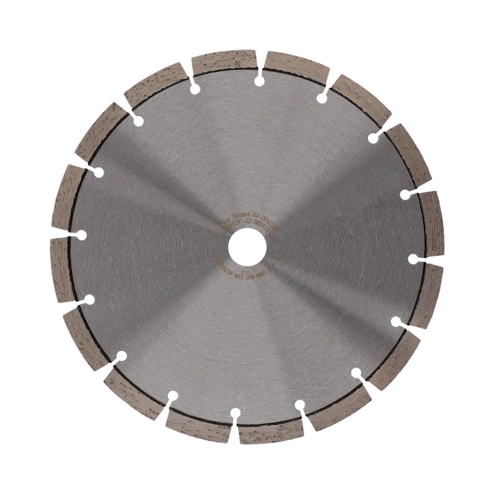 Diamantzaagbladen met doorlopend 10mm hoog segment, goede prijs/kwaliteitverhouding voor droog of nat zagen. De versterkte flenzen rond het asgat zorgen voor strak en recht zagen onder de moeilijkste omstandigheden.
