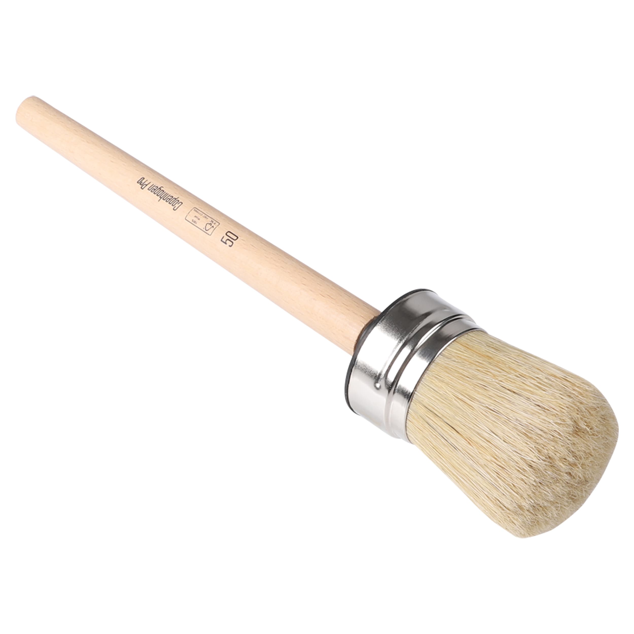Teerkop ronde kwast met gewaxte beukenhouten FSC steel voorzien van een nikkelen bus. De haren zijn vervaardigd van wit Chinees varkenshaar. Deze authentieke kwast is geschikt voor alle verfsoorten.