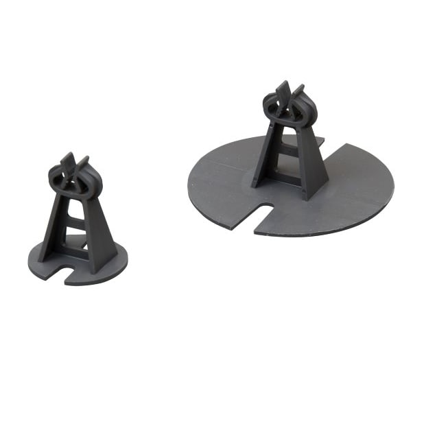 Kunststof Afstandhouders worden toegepast in de funderingsbekisting om de dekking van de wapening te waarborgen. De afstandhouders worden vastgeklemd aan de beugels van de korven. Advies: Bij zwaardere wapening kunnen het beste grondplaten met een diameter van ø100 mm gebruikt worden.