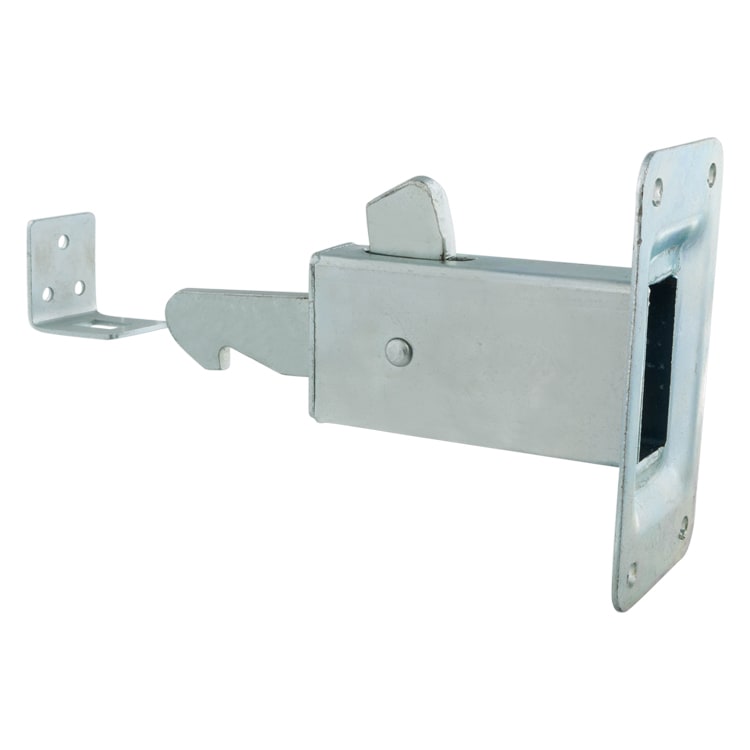 Met geperste vloerplaat en sluitplaat. Afmetingen muurplaat: 120x67x7 mm. Met 4 schroefgaten. Sluithoogte boven de grond, model met vloerplaat: 85 mm.