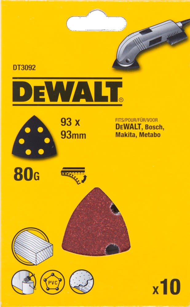 DeWALT Deltaschuurpapier DT3092QZ K80 93mm Driehoekig 10st