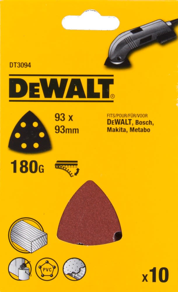 DeWALT Deltaschuurpapier DT3094QZ K180 93mm Driehoekig 10st