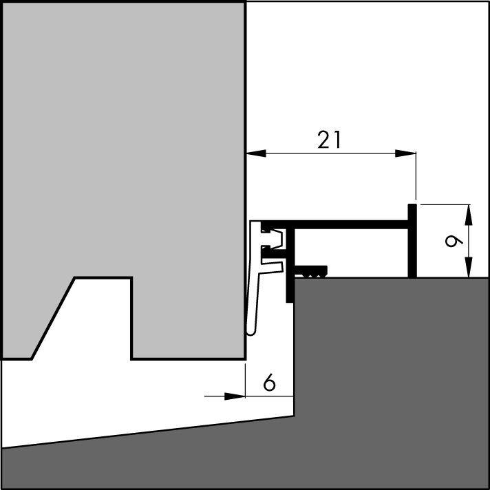 Aluminium opbouw tochtprofiel voor onder- of tussendorpels bij naar buiten draaiende ramen. Kan eventueel voor de kozijnstijlen en bovendorpel gecombineerd worden met de ANB 1N.