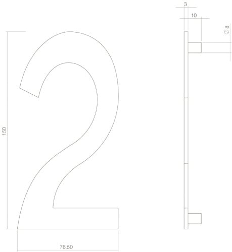 HomeBouwbeslagDeurbeslagHuisnummers en -lettersIntersteel Huisnummer 2 150x3mm RVS Zwart