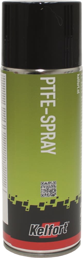 Kelfort PTFE-spray is een op siliconenolie en PTFE-poeder gebaseerd kleurloos smeermiddel. Dankzij haar eigenschappen kan PTFE Spray universeel ingezet worden. Zeer specifiek kan het ook toegepast worden waar minerale oliën of MoS2 niet gebruikt kunnen worden vanwege mogelijke verontreiniging. Kelfort PTFE Spray is zeer universeel te gebruiken in de elektrotechniek, elektromechanica, kunststofverwerking, papierindustrie, textielindustrie, enz.