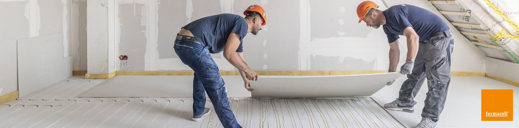 Steeds meer nieuwe en bestaande woningen krijgen vloerverwarming. Dat komt door de opkomst van de warmtepomp of aansluiting van woningen op een warmtenet. Die systemen werken het meest efficiënt met lage temperatuurverwarming. De vloerverwarmingselementen fermacell® Therm25TM maken het aanbrengen van vloerverwarming heel eenvoudig en beperken de opbouwhoogte tot slechts 35 mm.