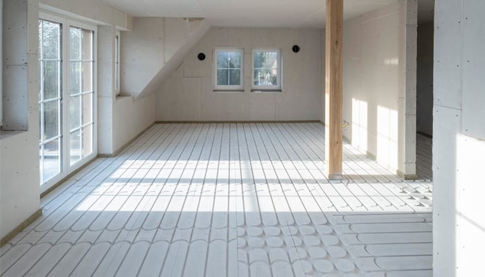 Nadat de leidingen zijn geïnstalleerd en de tweede gipsvezelplaat is geplaatst of een egalisatielaag is aangebracht, kan je al na 24 uur de vloer belopen (bij een kamertemperatuur van 20°C). De vervolgwerkzaamheden, zoals het leggen van de vloerafwerking, kan dan direct van start gaan.