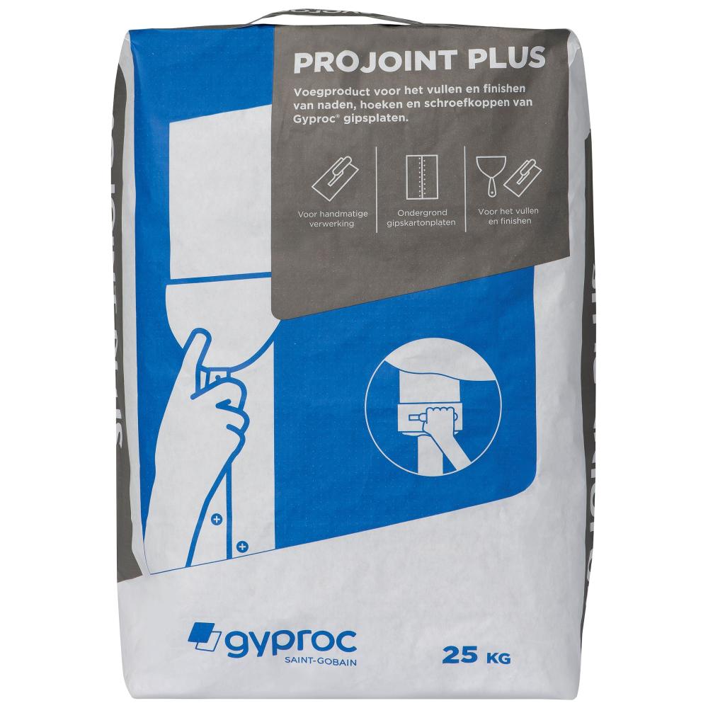 Naden, hoeken en schroefgaten van gipsplaten eenvoudig afwerken? Dat kan met Gyproc ProJoint® Plus. ProJoint Plus is een innovatief poedervormig voegproduct met de eigenschappen van een kant-en-klaar pasta product.