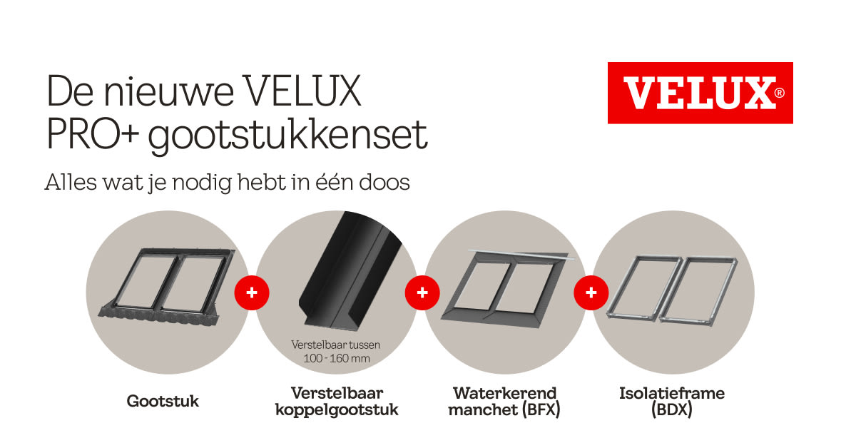 Vanaf nu zijn ook de laatste koppelgootstukken beschikbaar in de PRO+ variant met verstelbare middengoot. Deze PRO+ variant is inclusief waterkerend manchet BFX en isolatieframe BDX.