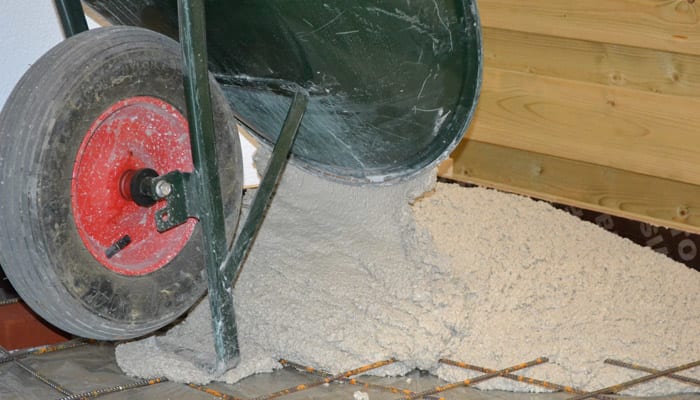 De aanduiding ‘eco beton’ betekent vooral dat er veel minder cement wordt gebruik voor de droge mortel. Dat percentage ligt zelfs ver onder het gebruikelijke percentage. Het resterende deel bestaat uit hoogoven slak.