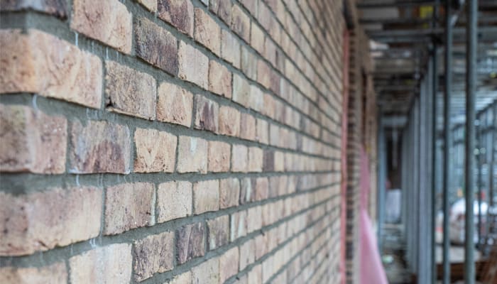 HSB Bouw maakt voor Project De Schrijvers gebruik van Weber Beamix Doorstrijkmortel 347 Plus UR+. Hierbij worden 140 appartementen gebouwd in de gemeente Haarlem. Voor dit Haarlemse project werd uiteindelijk gekozen voor een doorstrijkmortel voor gehydrofobeerde stenen. “We hebben hier te maken met een speciale steen. Deze is namelijk gecoat”, legt voorman metselaar Peter van Dessel uit. “De steen neemt heel weinig vocht op. “Het probleem van normale specie met deze steen is dat de gewone specie niet goed aantrekt op een gehydrofobeerde steen. Deze specie doet dit juist wel. De specie trekt beter aan dus we kunnen sneller hogerop metselen en de specie is beter verwerkbaar.”