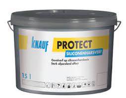 Knauf Protect siliconenharsverf is een gevelverf op siliconenharsbasis. De verf is samengesteld uit polysiloxanenemulsie, acrylaatdispersie, kleurpigmenten en conserveringsmiddelen. De verf is lichtecht, weersbestendig en de structuur van de ondergrond blijft behouden. Met Knauf Protect siliconenharsverf wordt een verflaag aangebracht op gevels van minerale en organische Knauf pleisters. Tevens zeer geschikt voor het egaliseren van kleurschakeringen ten gevolge van onregelmatig drogen of veranderingen van de klimatologische omstandigheden.