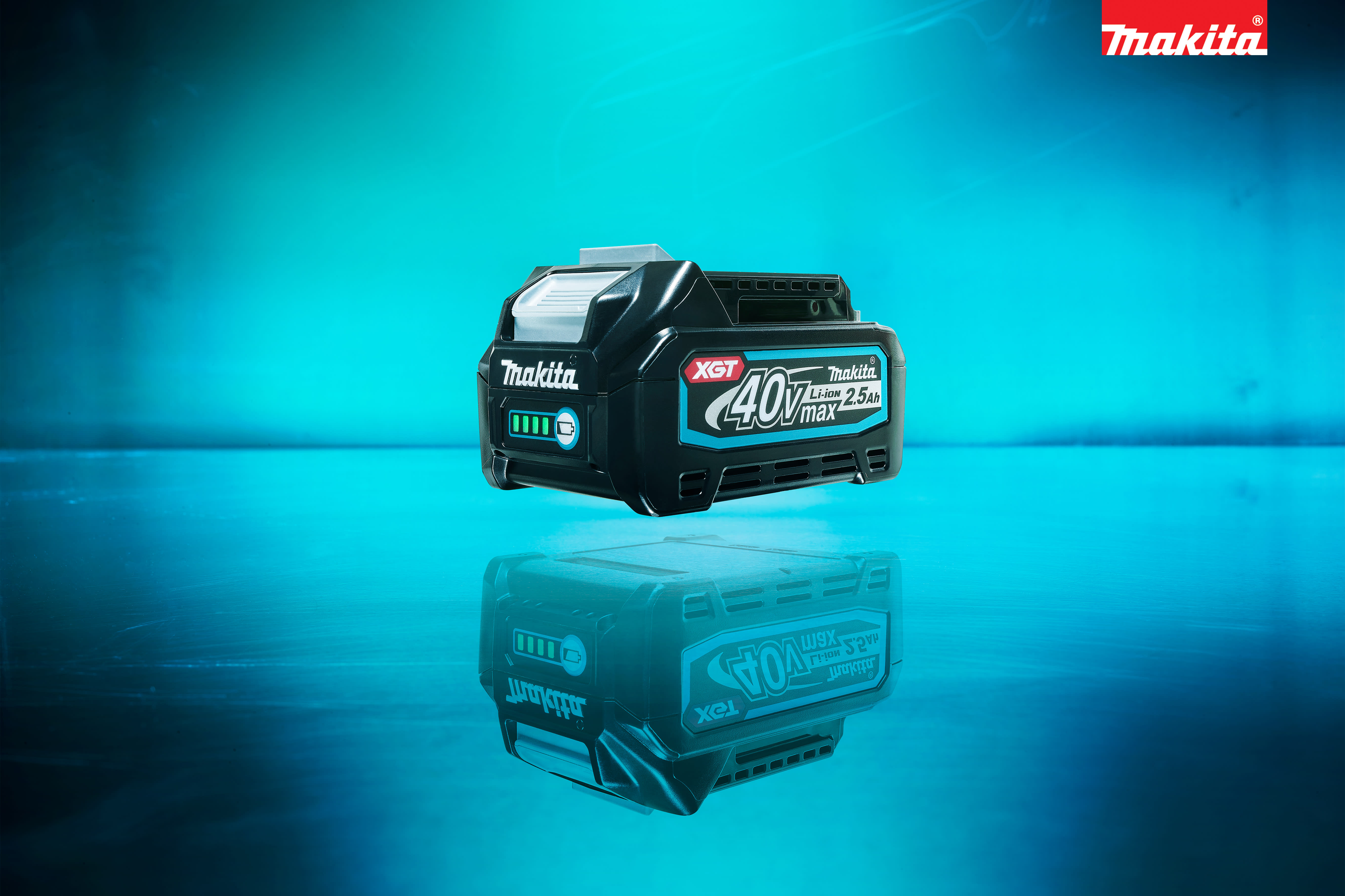 XGT 40 V Max Li-ion accu met een tankinhoud van 2,5 Ah. De accu is voorzien van een led indicator die de tankinhoud van de accu weergeeft. De machines, accu’s en oplader van het XGT-platform zijn standaard voorzien van elektronica, waardoor deze met elkaar kunnen communiceren. De oplader geeft de meest geoptimaliseerde oplading aan de accu afhankelijk van de status van de accu. In combinatie met de DC40RA snellader is de accu in slechts 28 minuten weer volledig geladen.