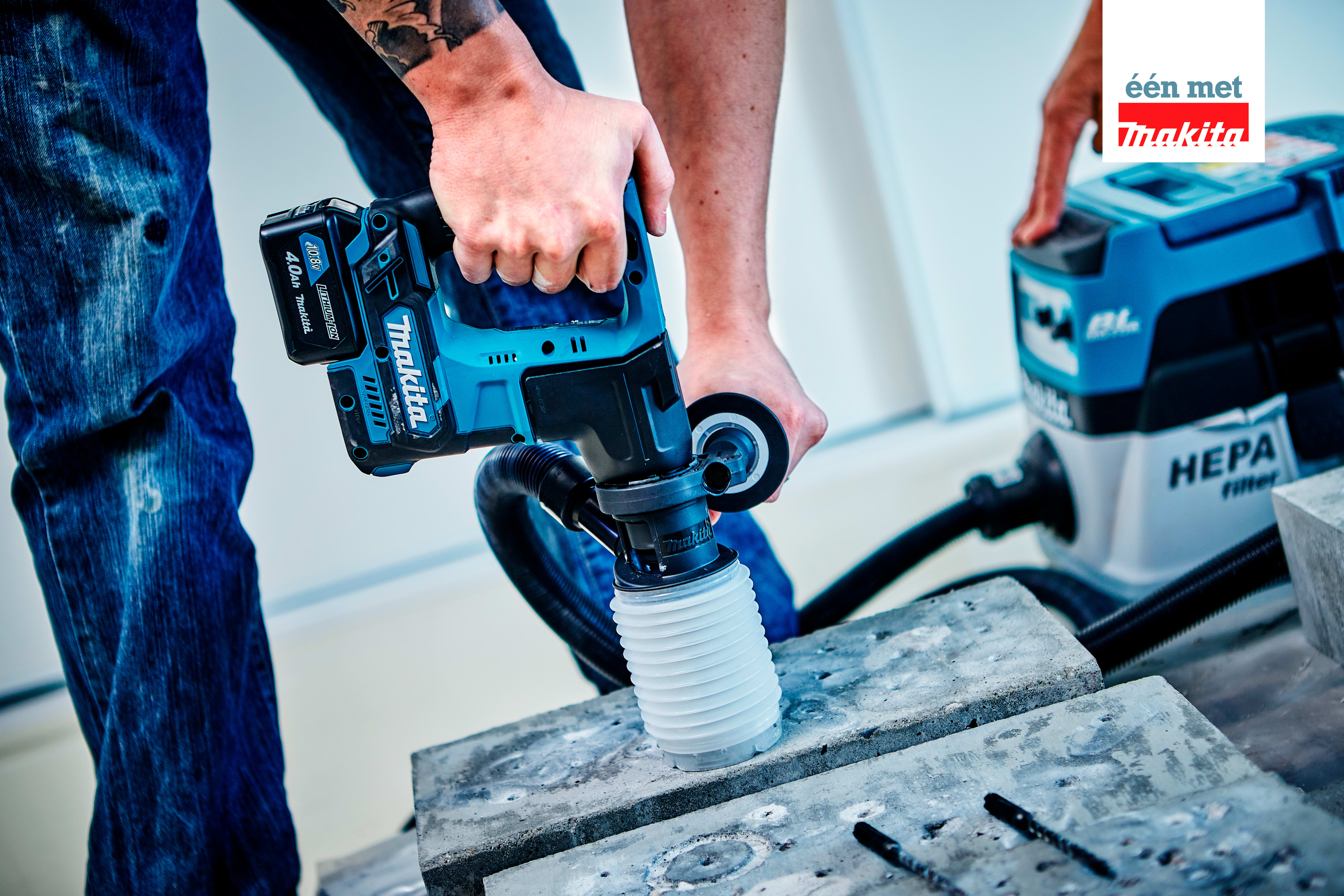 Ideaal boorbereik voor gaten tot 12 mm, maar kan tot 16 mm in beton. Standaard geleverd met stofafzuiging. Eenvoudig aan te sluiten op een (accu) stofzuiger. Snelle SDS-PLUS boorhamer met bijzonder lage trillingen. Specifiek ontwerp aan de behuizing resulteert in uiterst lage trillingen. Compact van formaat en licht in gewicht. Slechts 1,8 kg. Lichte machine voor professioneel gebruik. Groots in klein werk. Zeer constant toerental tijdens bewerkingen dankzij de koolborstelloze motor.