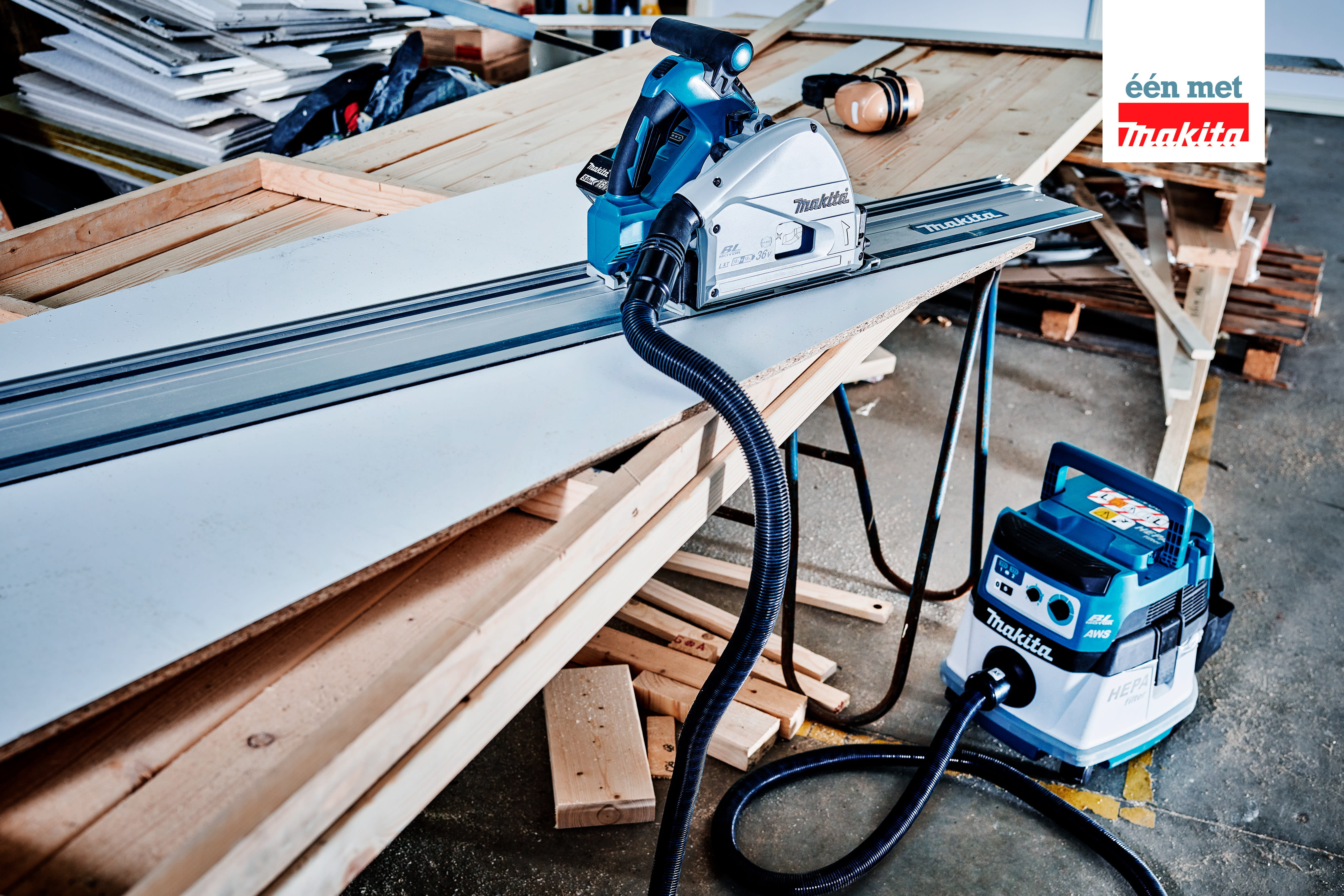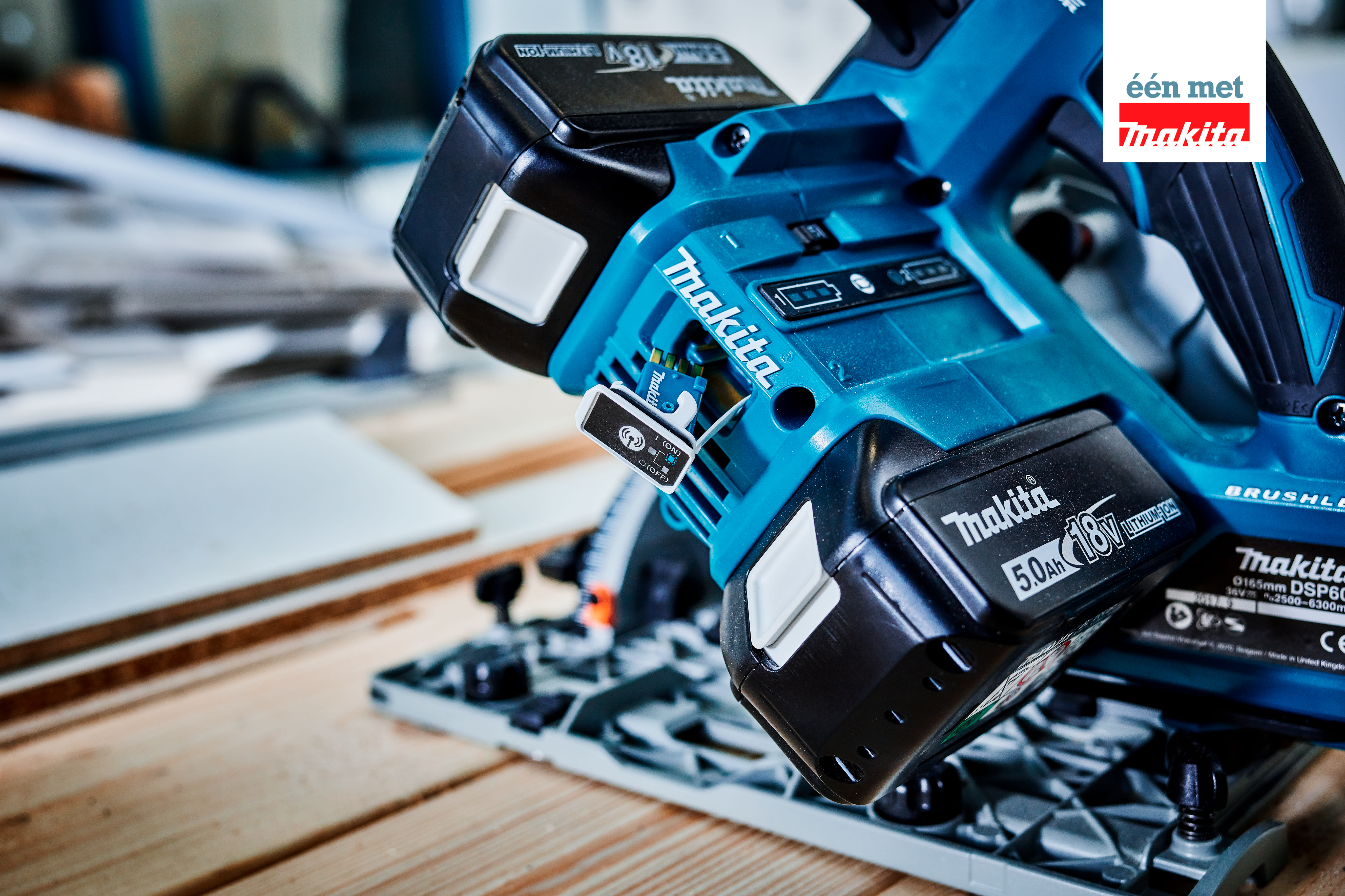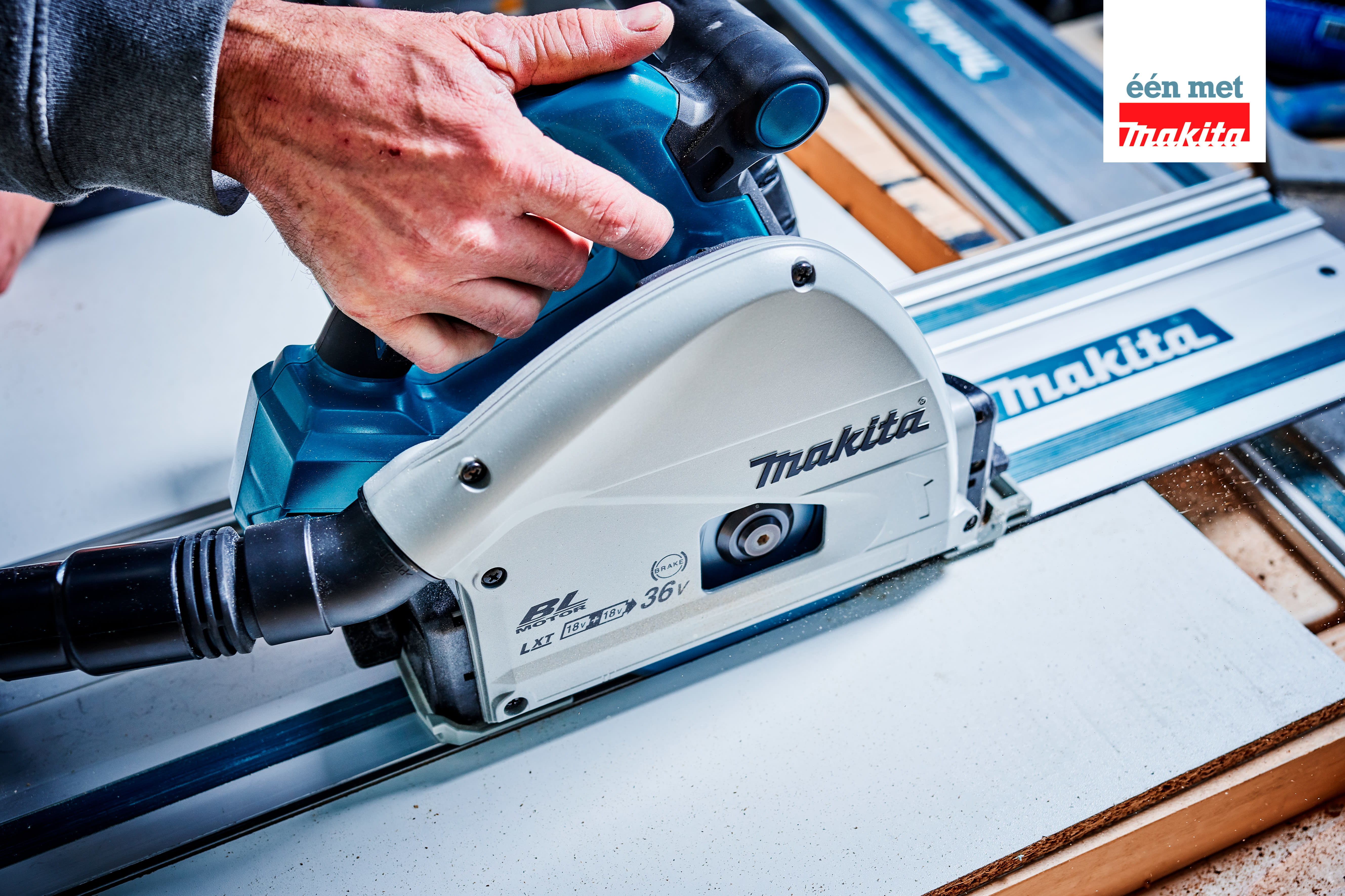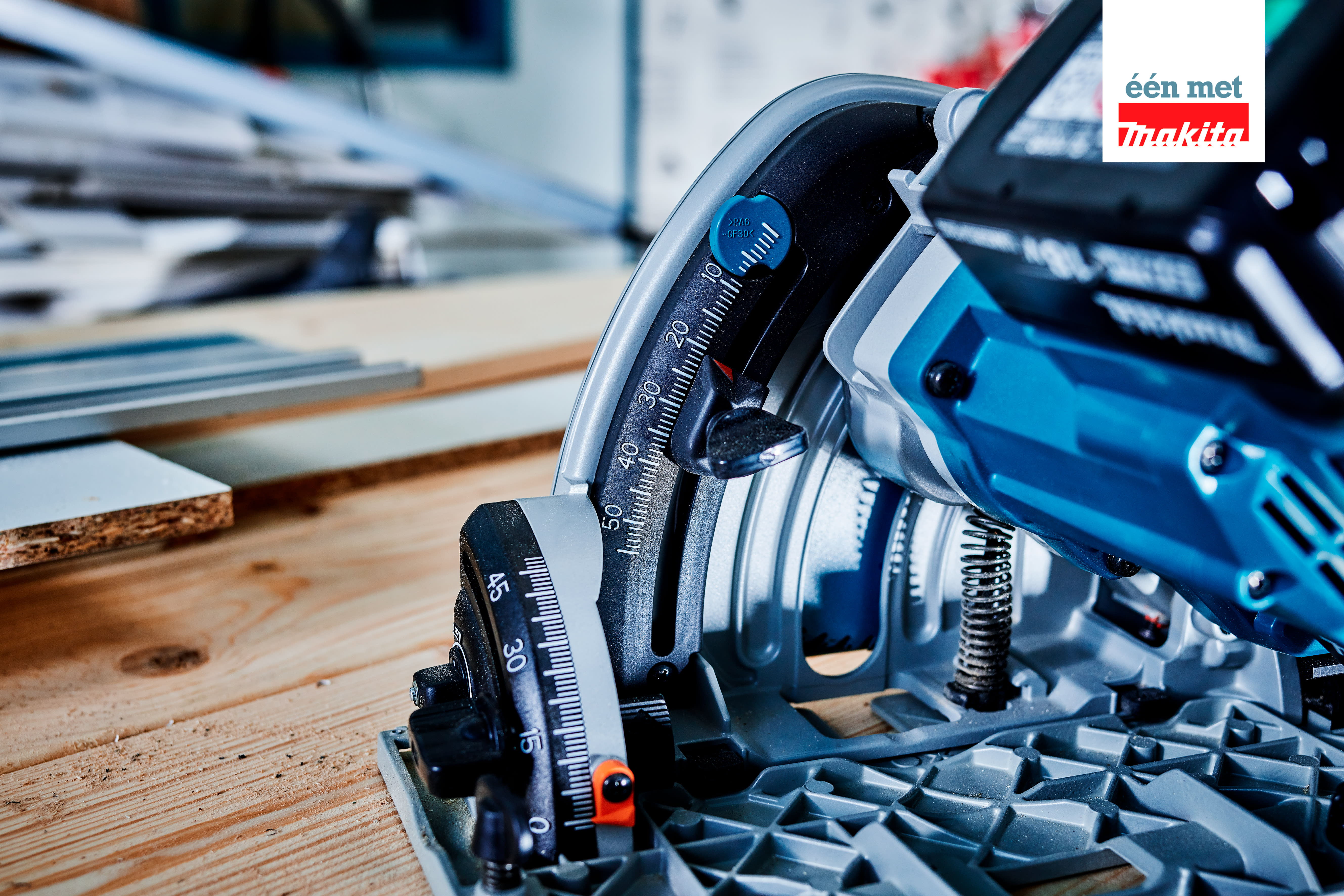Altijd dezelfde zaaglijn, onder elke ingestelde hoek. Standaard uitgerust met efficut zaagblad, waardoor de machine sneller en zuiverder zaagt en langer zaagt op één acculading. Dicht op de muur zagen: 18 mm minimaal. De motor is voorzien van een elektronische rem waardoor het zaagblad onmiddellijk stilstaat. Ideaal voor het nauwkeurig op maat zagen van plaatmaterialen, massieve houten panelen en voor het uitzagen van rechte uitsparingen. Uitgerust met Auto-start Wireless System (AWS) voor draadloze communicatie tussen accumachine en accustofzuiger. Snel en eenvoudig splintervrij zagen dankzij de voorritsfunctie. Geschikt voor het zagen van diverse materialen dankzij de variabele toerenregeling. Beschikt over Automatic torque Drive Technology (ADT): de machine past bij weerstand elektronisch de zaagsnelheid en het koppel aan voor behoud van kracht. Kantelbaar van -1° tot 48° met precieze aanslagen op 0°, 22,5° en 45°. Compleet snoerloos en voorzien van soft start techniek is deze invalzaag comfortabel in gebruik. De maximale zaagdiepte bij 0° is 56 mm. De zaagsnelheid kan ook handmatig geregeld worden via een draaiknop. Let op: de maximale zaagcapaciteit neemt met 4 mm af zodra de machine op de geleiderail staat. Dankzij de ingebouwde vergrendeling kantelt de zaag niet van de rail als deze onder een hoek van 45° gebruikt wordt. Snel en zuiver zagen door constant instelbaar toerental dankzij BL-motor.