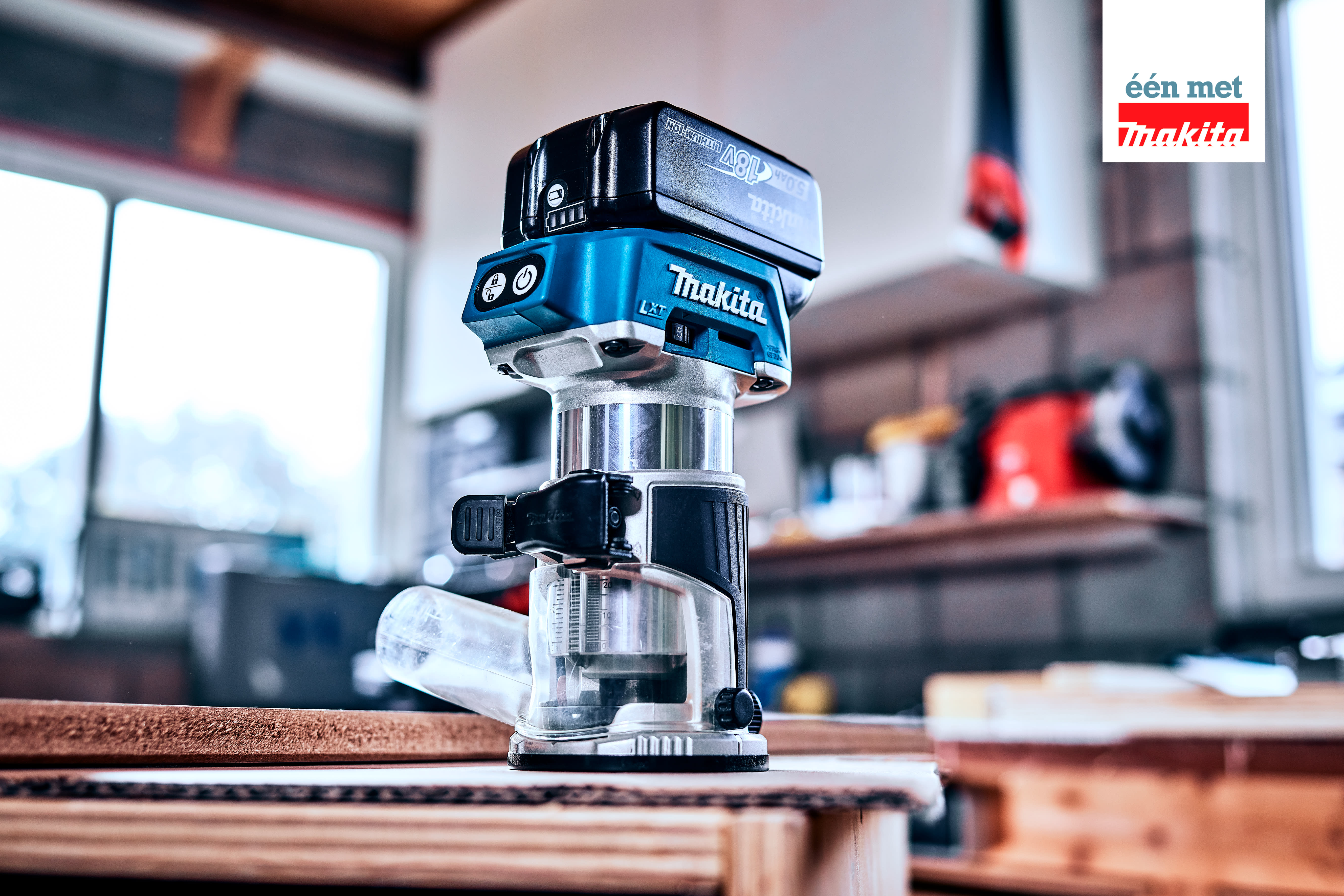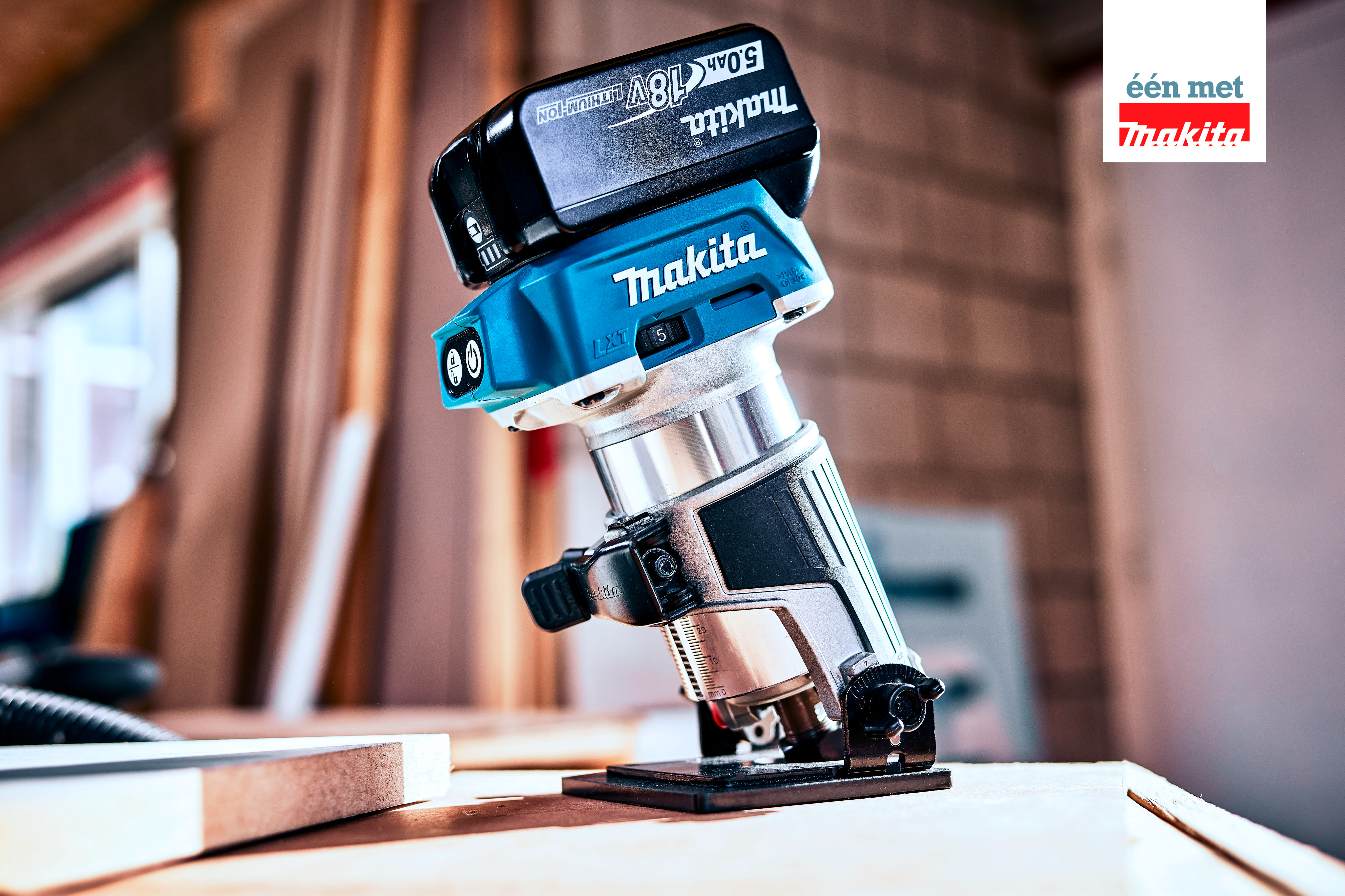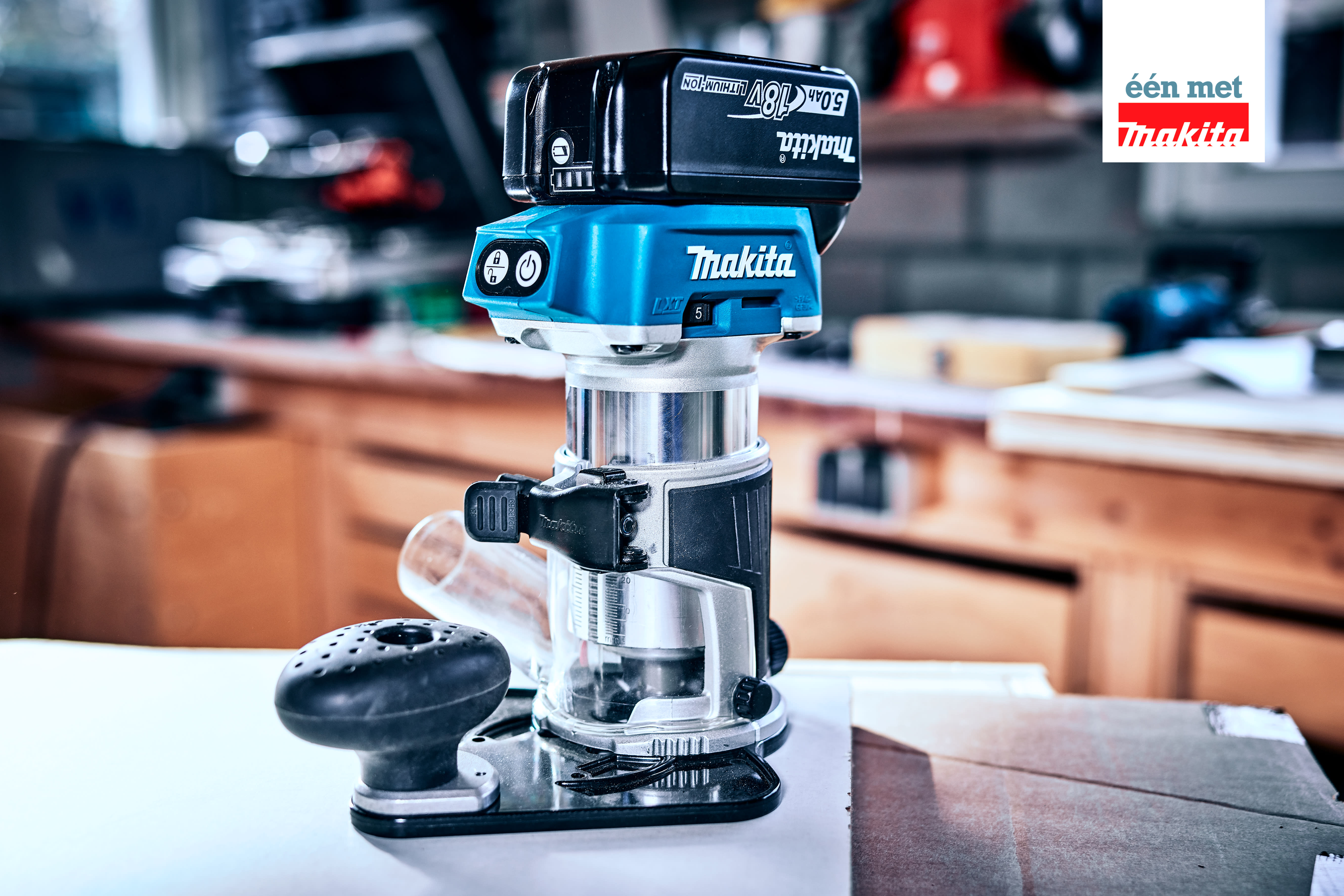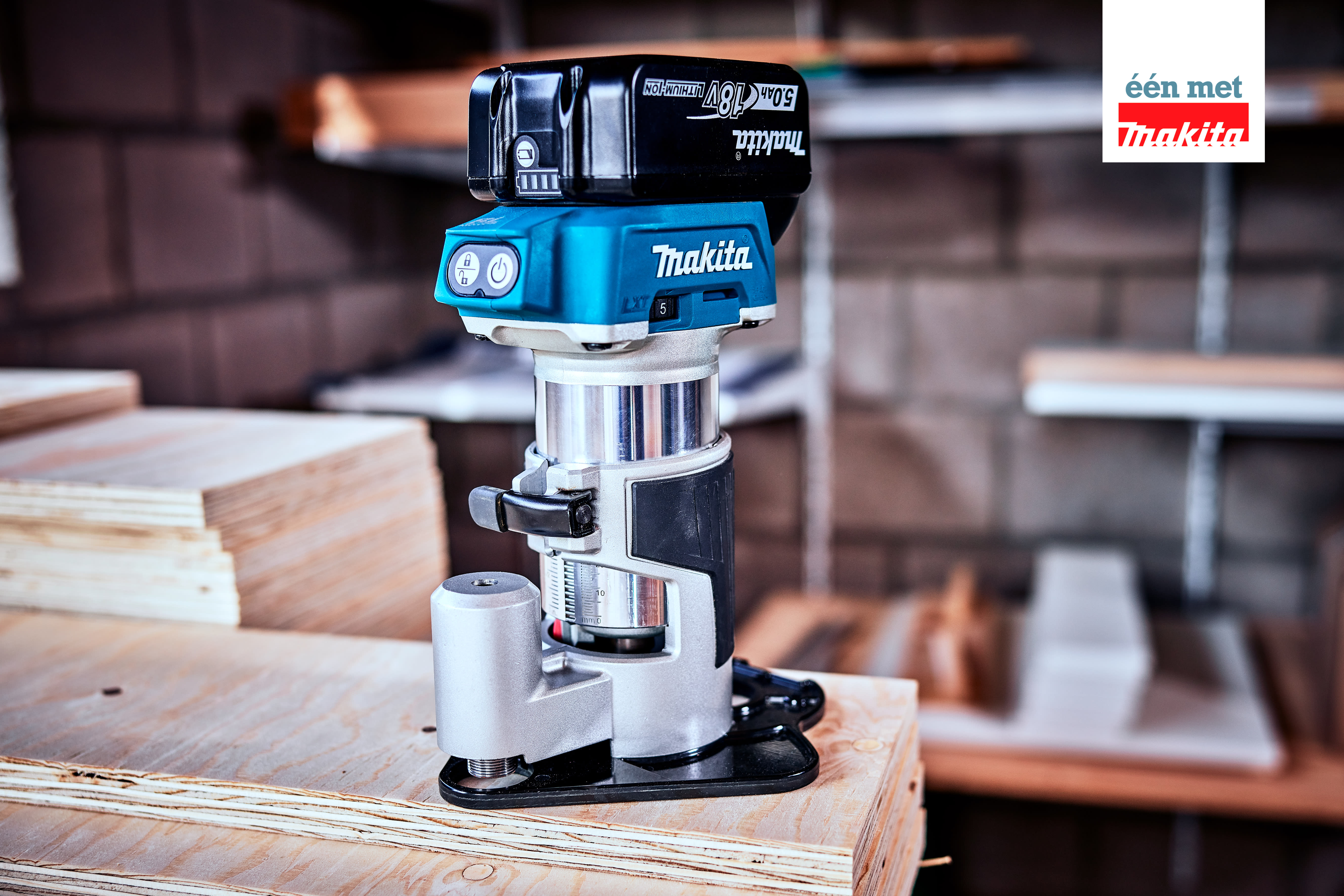 Makita Accu Kantenfrees DRT50Z 18V Zonder Accu En Lader In Doos
