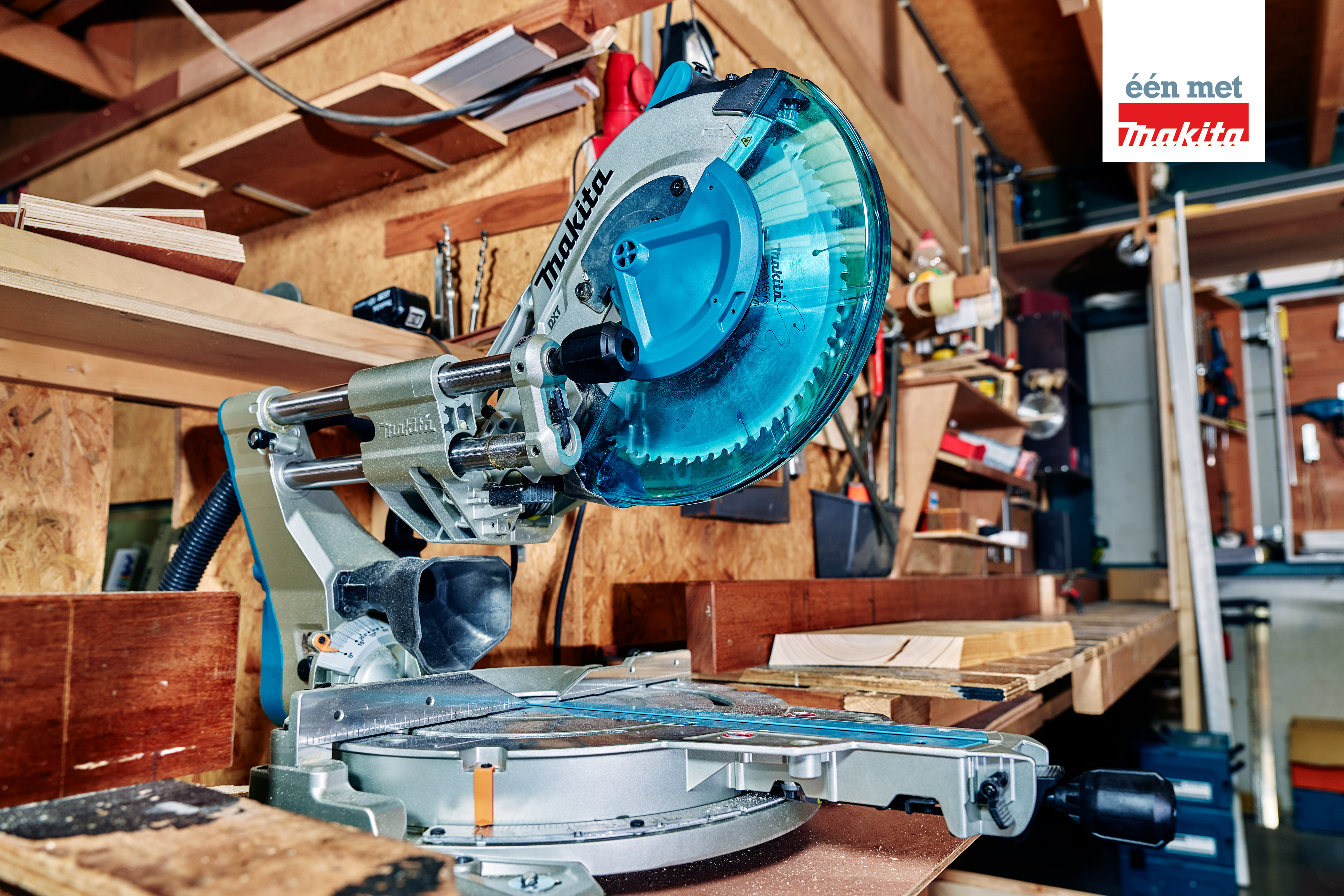 - Verstek- en kantelzaag voor dubbel verstek (L R).
