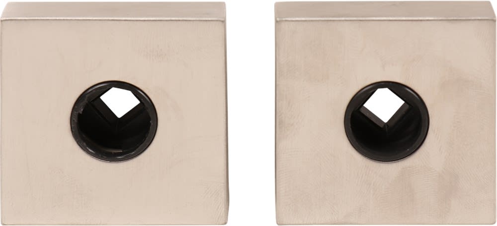 Rvs AISI 304 (A2) mat geborsteld, met onzichtbare bevestiging. Afmeting 50x50x11 mm.