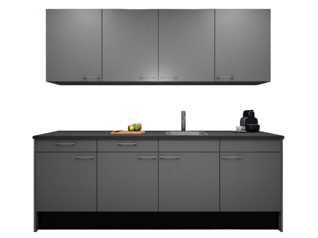 Procasa Keuken 240cm Compleet Grey Spoelbak Rechts Uit Midden Met Inbouwkoelkast Rechts