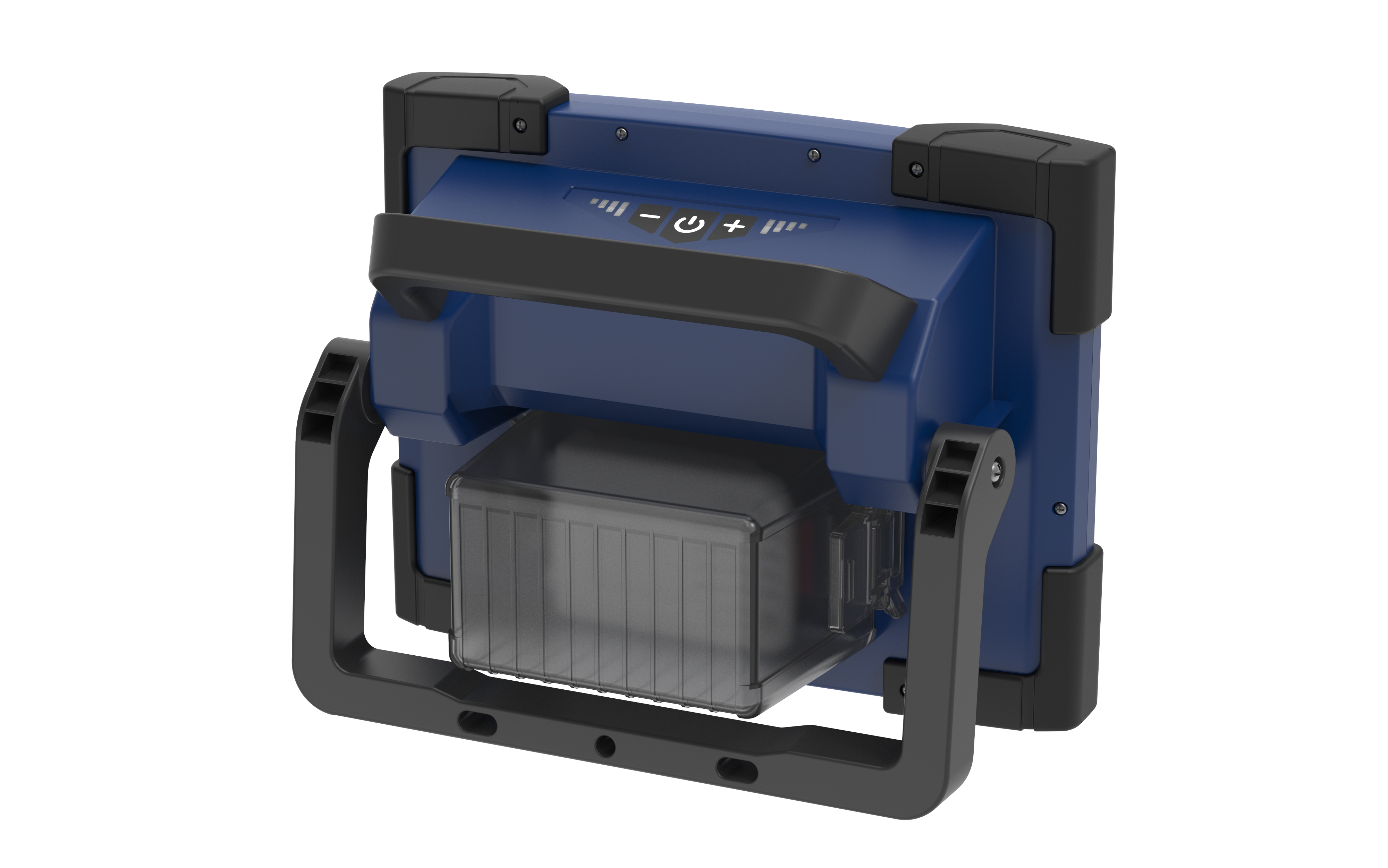 - Bouwlamp werkzaam op accu’s van Makita, Bosch, DeWalt
