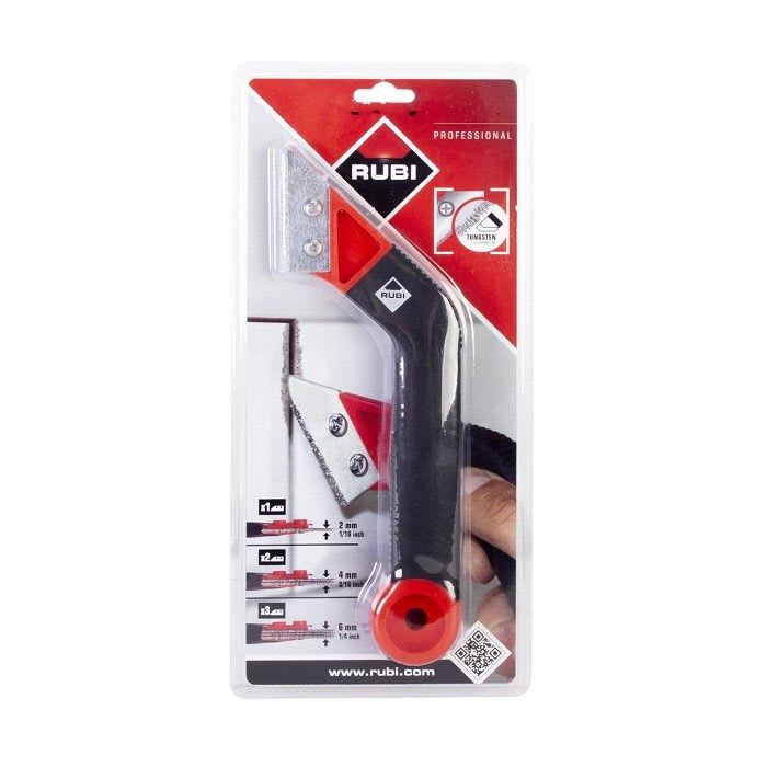 Ergonomische handgreep met twee slijtvaste elektronisch bezonken WIDIA-plaatjes. Bruikbaar met 1, 2 of 3 WIDIA-plaatjes afhankelijk van de voegbreedte. Verpakt in blister.