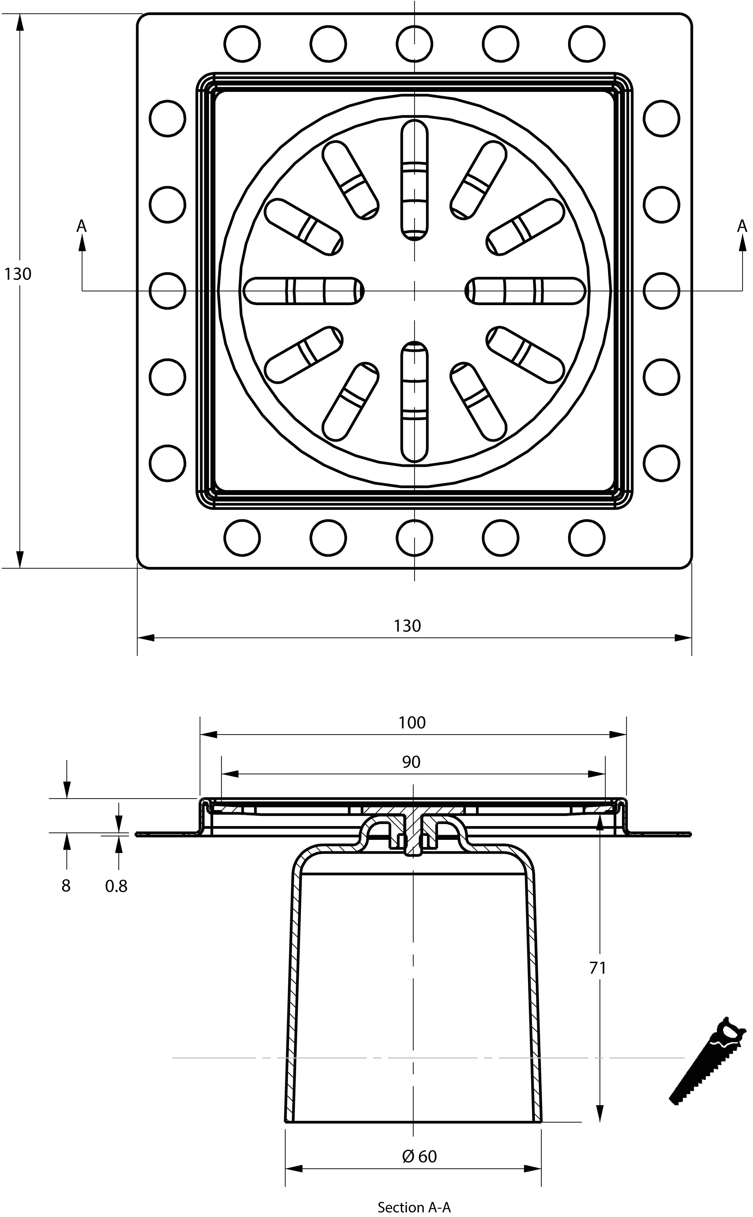 HomeBuitengevelAfvoer en leidingmateriaalPutten en dekselsRVS Renovatieput 100x100mm Inclusief Reukslot 60mm Inbouwdiepte 8mm