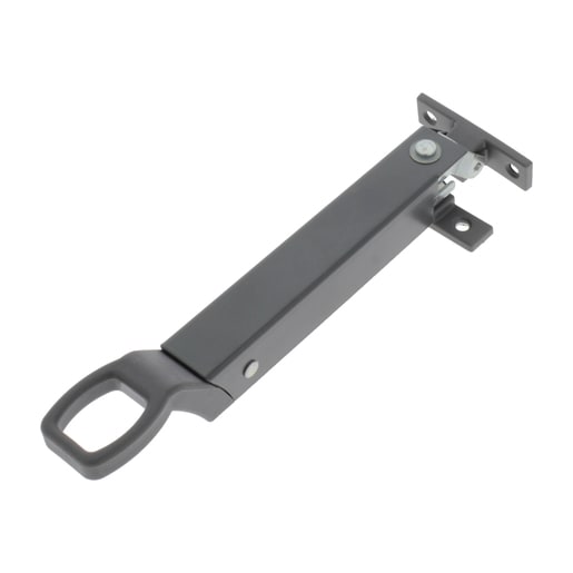 Voor naar buitendraaiende bovenlichten, klep- en uitzetramen. Maximale opening 16 cm. Raamuitzetter en -sluiter ineen. Wegdraaibaar.