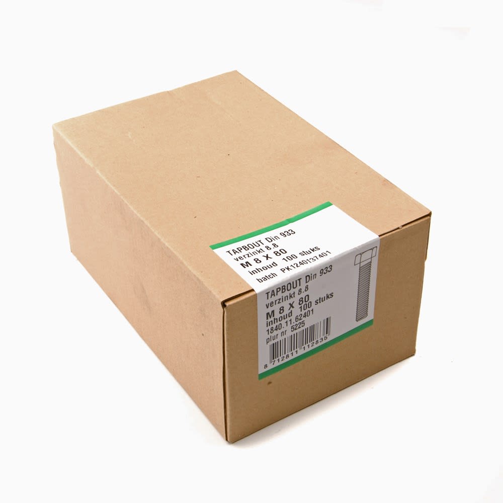 Tapbout M20x40mm Zeskantkop SW-30 DIN933 Verzinkt 8.8 25st