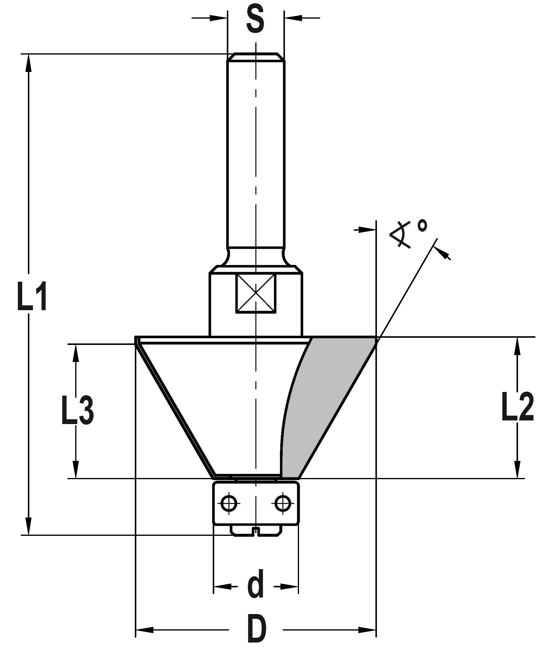 HomeVerbruiksartikelenFrezenFrezen voor houtTrasco Fasefrees Hardmetaal Met Kogellager 30mm 12mm Aansluiting 8mm