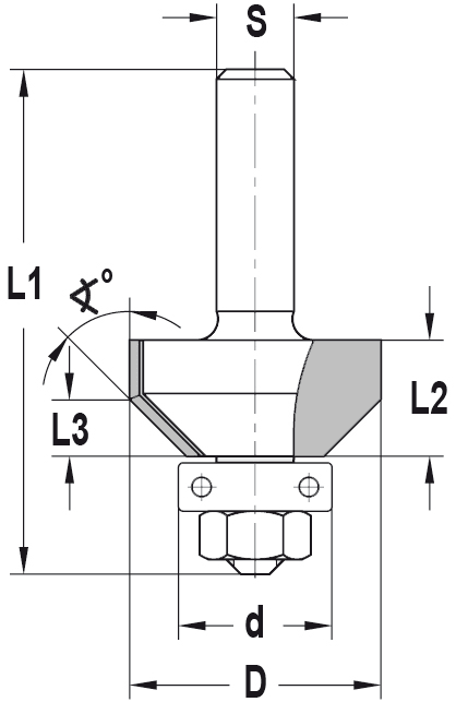 HomeVerbruiksartikelenFrezenFrezen voor houtTrasco Fasefrees Hardmetaal Met Kogellager 45mm 12.7mm Aansluiting 8mm