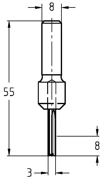 HomeVerbruiksartikelenFrezenFrezen voor houtTrasco Groeffrees Hardmetaal 3x8/55mm Aansluiting 8mm