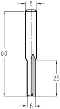 HomeVerbruiksartikelenFrezenFrezen voor houtTrasco Groeffrees Hardmetaal 6x25/60mm Aansluiting 8mm