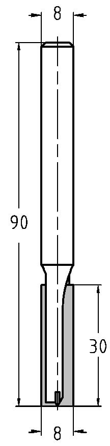 HomeVerbruiksartikelenFrezenFrezen voor houtTrasco Groeffrees Hardmetaal 8x30/90mm Aansluiting 8mm