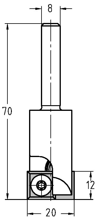 Trasco Keermesgroeffrees Hardmetaal 20x12/70mm Aansluiting 8mm