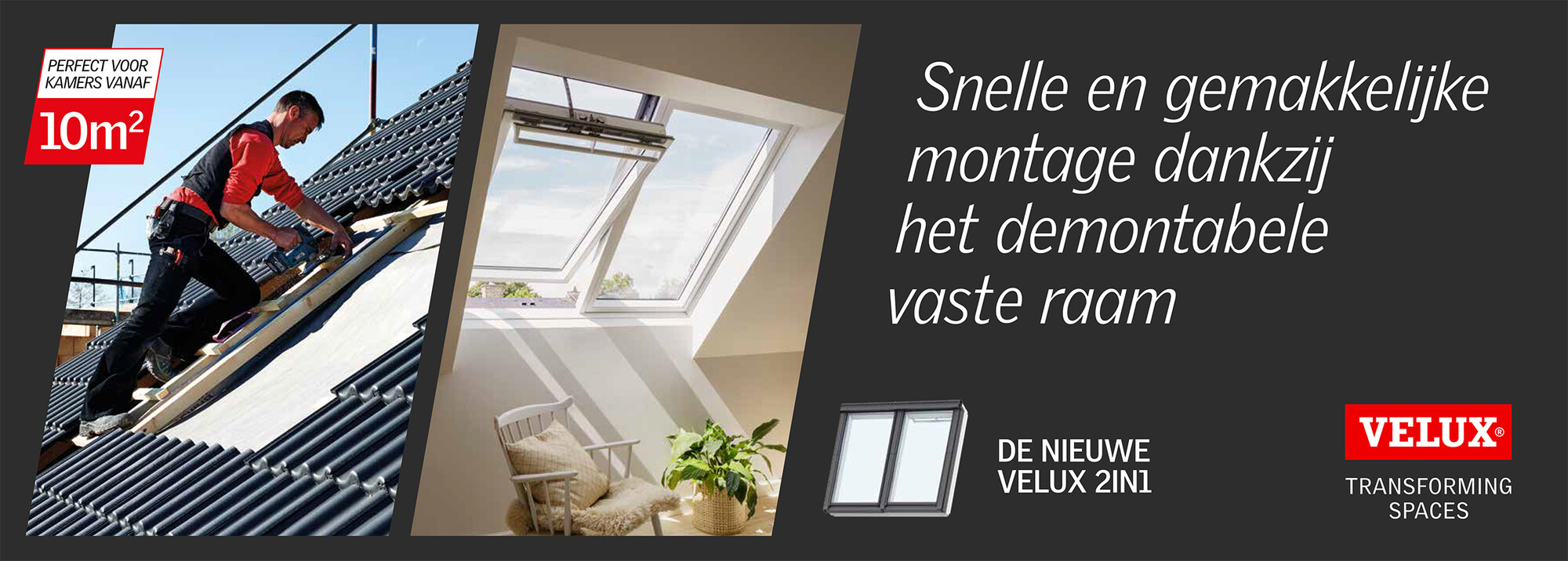 Wil je inspelen op de groeiende vraag naar daglicht? Maak kennis met de VELUX 2in1 – de nieuwe standaard voor dakramen. Gemaakt voor kamers vanaf 10m2, zorgen ze eenvoudig voor de juiste hoeveelheid daglicht in één montage. Dus maak de juiste keuze en laat dubbel zoveel daglicht binnen.