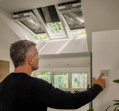 Zowel de VELUX 2in1 als de VELUX 3in1 kan werken op zonne-energie, zodat een extra comfortabele bediening met één druk op de knop mogelijk wordt.
