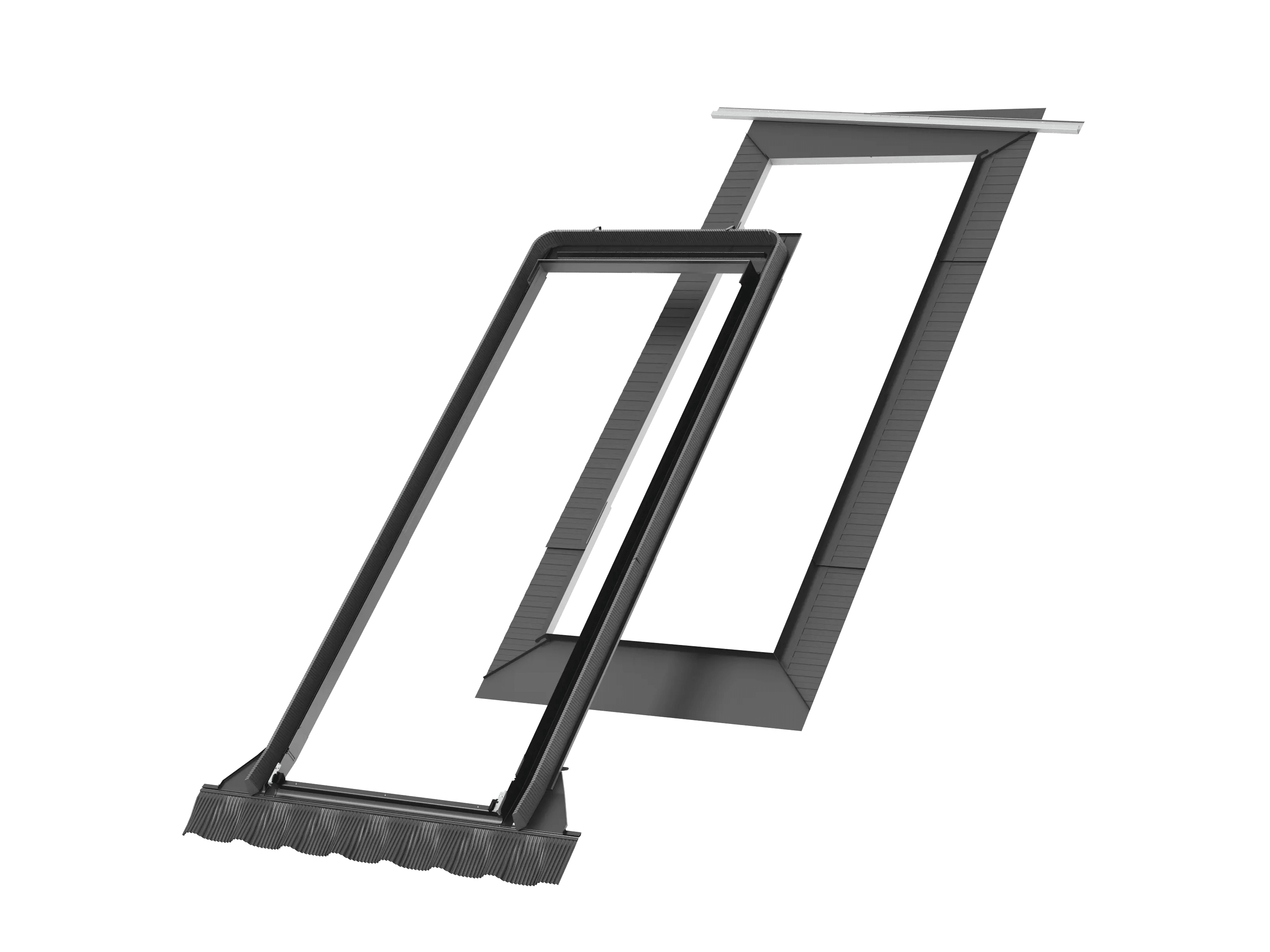 De VELUX Pro gootstukset wordt geleverd met een eenvoudig te monteren waterkerende manchet en een ingebouwde afvoergoot. De waterkerende manchet creëert een waterdichte afsluiting tussen het dakvenster, de panlatten en de dakbekleding. De afvoergoot biedt u extra zekerheid door het water dat via de dakbekleding binnendringt, veilig en effectief af te voeren vanaf de bovenkant van het dakvenster.