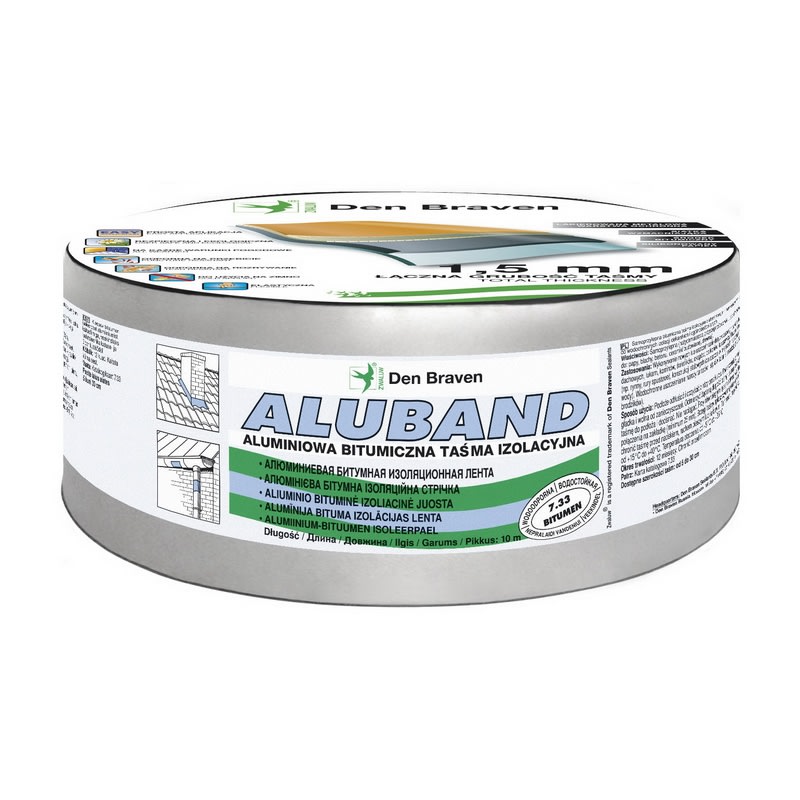 Zwaluw Aluband is een sterk zelfklevende gemodificeerde bitumenlaag met een toplaag van een sterke weerbestendige aluminium of loodkleurige polyester folie en een makkelijk te verwijderen gesiliconiseerde polyethyleen schutfolie met een hoge dichtheid aan de onderkant.
